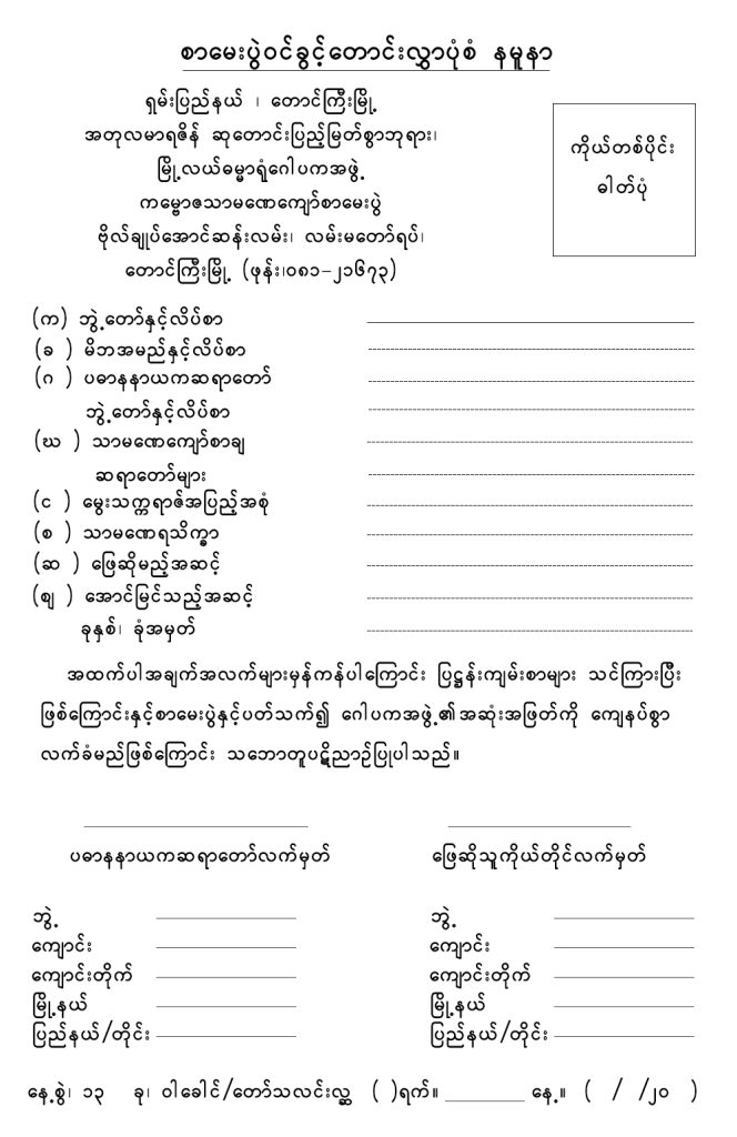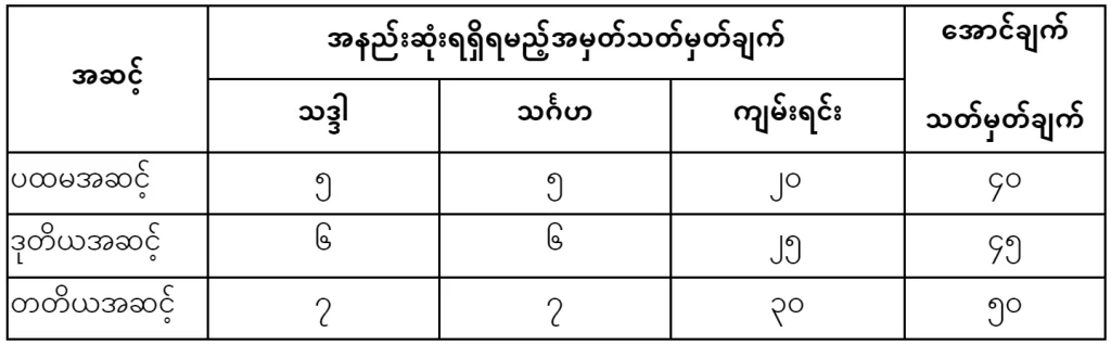 ပထမဆင့် ဝိနည်းမဟာဝါပါဠိတော်မေးခွန်း
